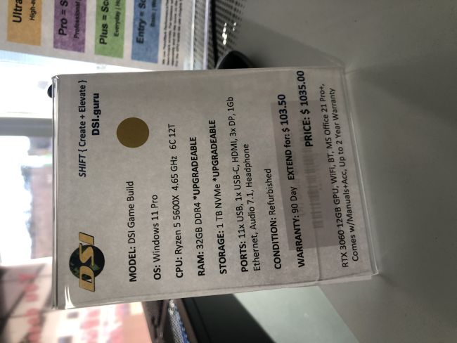 3. Lastly we have the ultimate! The DSI Frenzy. It is a beast! It is the first edition to the new gaming line we intend to build. These will come in 3 variants, 2 in panoramic style and we will also offer a stealth version. The current one on display is the black panoramic featuring a glass side and front with an internal 5” screen and black dragon with red claws for a trinket. The panoramic style will have the option of the screen and a trinket. The trinket can be the options we have or something personal you bring in to really personalize it. Each one is built with love to meet your specifications and is backed by a 3 year warranty expandable to 5 years. The one on display is powered by an Intel i9 12th gen special edition working together with an RTX 5060ti 16GB GPU, 32GB RAM, communicating on the latest BUS specs; DDR5, PCIe5, M.2 Gen4. DSI trained AI models running locally on on it. Games installed, come try it out, see what excellence feels like. The current display model is priced @ $2400.