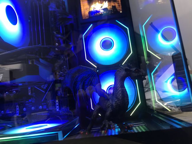 3. Lastly we have the ultimate! The DSI Frenzy. It is a beast! It is the first edition to the new gaming line we intend to build. These will come in 3 variants, 2 in panoramic style and we will also offer a stealth version. The current one on display is the black panoramic featuring a glass side and front with an internal 5” screen and black dragon with red claws for a trinket. The panoramic style will have the option of the screen and a trinket. The trinket can be the options we have or something personal you bring in to really personalize it. Each one is built with love to meet your specifications and is backed by a 3 year warranty expandable to 5 years. The one on display is powered by an Intel i9 12th gen special edition working together with an RTX 5060ti 16GB GPU, 32GB RAM, communicating on the latest BUS specs; DDR5, PCIe5, M.2 Gen4. DSI trained AI models running locally on on it. Games installed, come try it out, see what excellence feels like. The current display model is priced @ $2400.